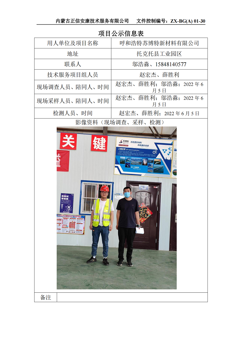 呼和浩特蘇博特新材料有限公司定期檢測項(xiàng)目公示信息表