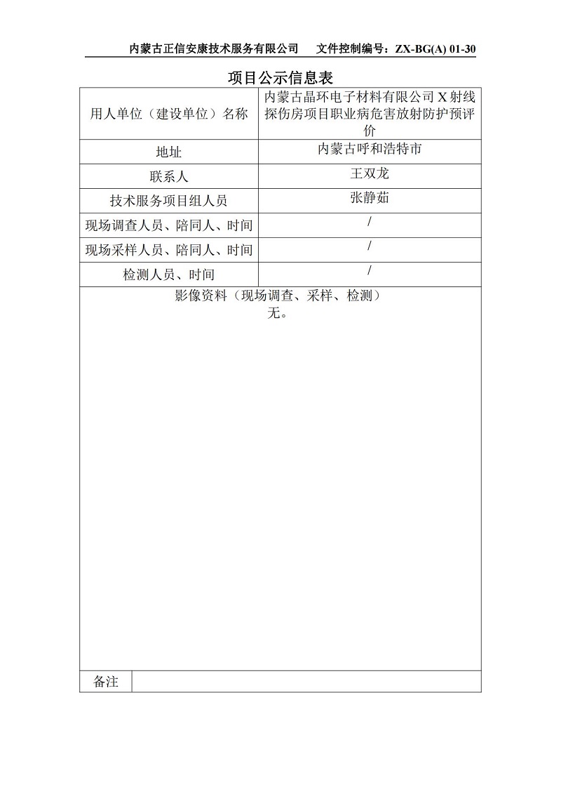 內蒙古晶環(huán)電子材料有限公司X射線探傷房項目職業(yè)病危害放射防護預評價