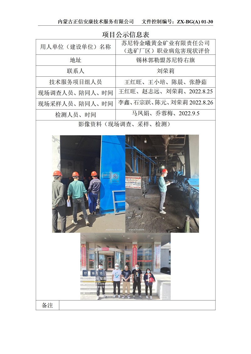 尼特金曦黃金礦業(yè)(選礦廠區(qū))項目公示信息表