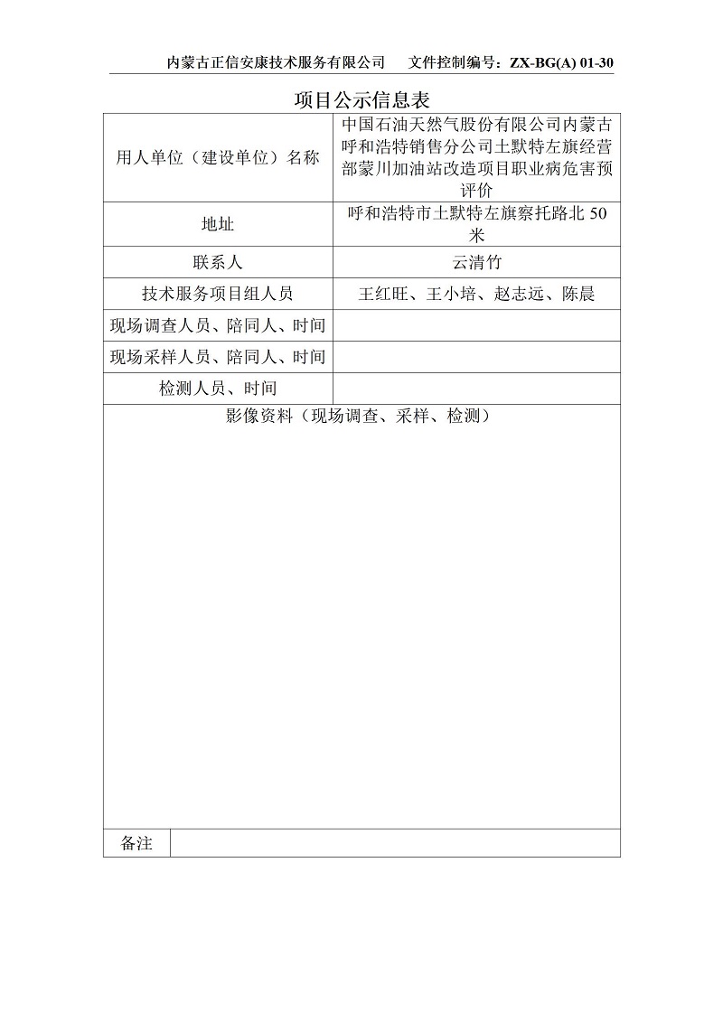 中石油蒙川加油站預(yù)評項(xiàng)目公示信息表