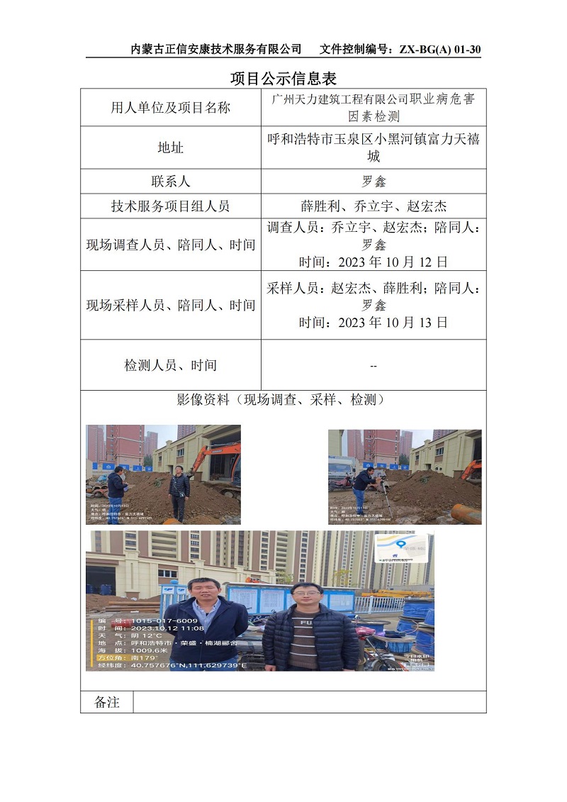 廣州天力建筑工程有限公司職業(yè)病危害因素檢測項(xiàng)目公示信息表