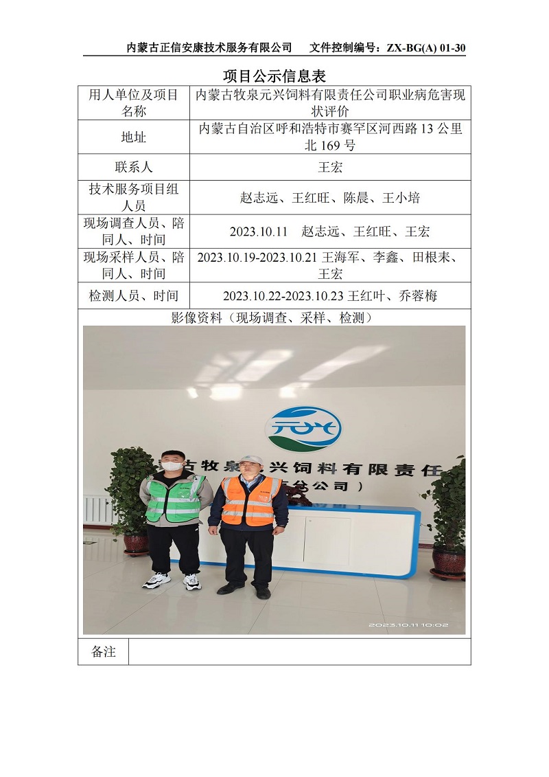 內(nèi)蒙古牧泉元興現(xiàn)狀-項目公示信息表