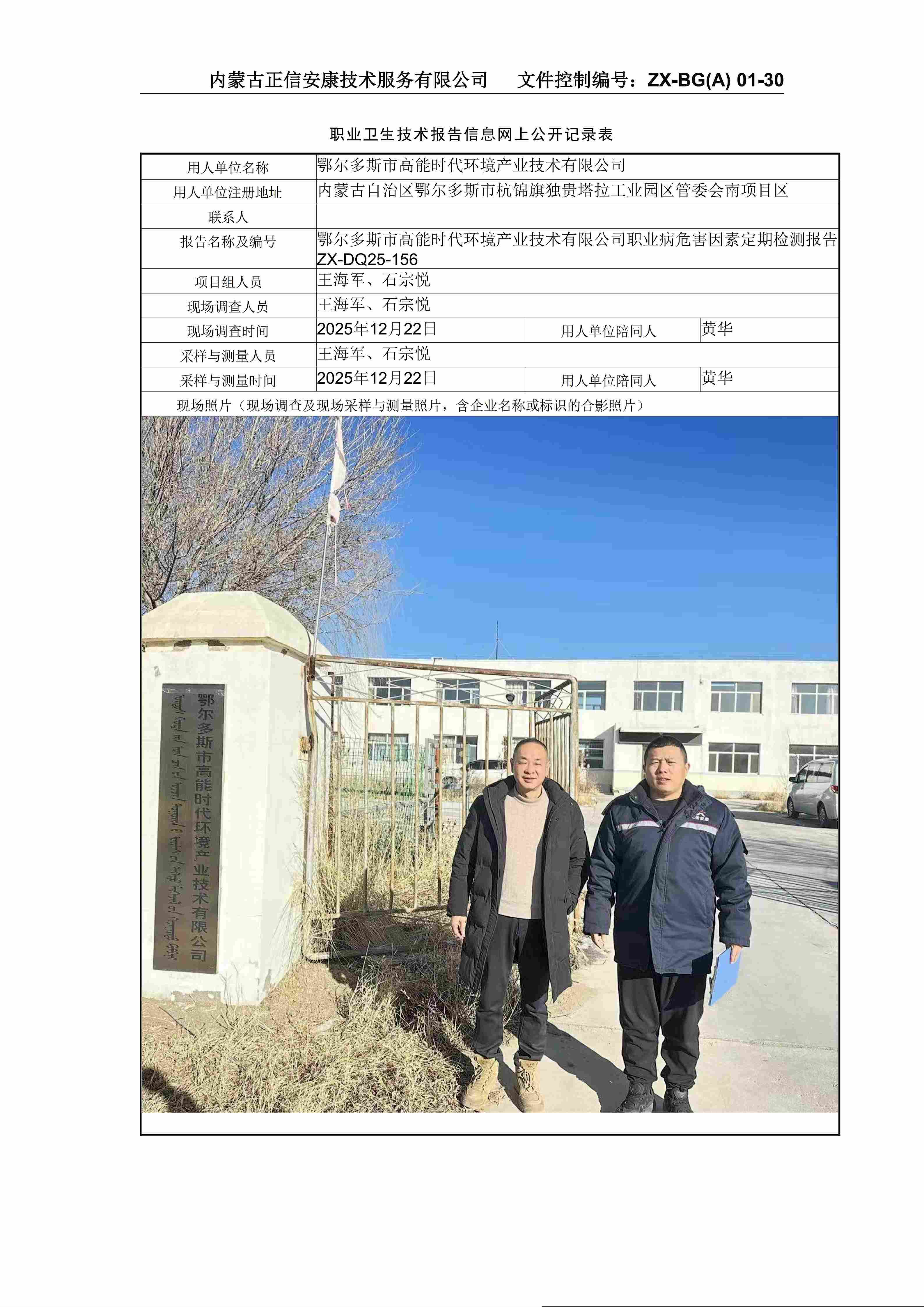 鄂爾多斯市高能時代環(huán)境產(chǎn)業(yè)技術(shù)有限公司職業(yè)病危害因素定期檢測報告