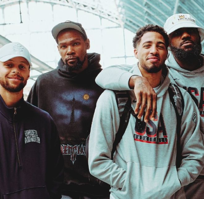 替補(bǔ)7人:德文-布克、安東尼-愛德華茲、杰倫-威廉姆斯、凱文-杜蘭特、安東尼-戴維森、斯蒂芬-庫(kù)里、謝登-夏普;