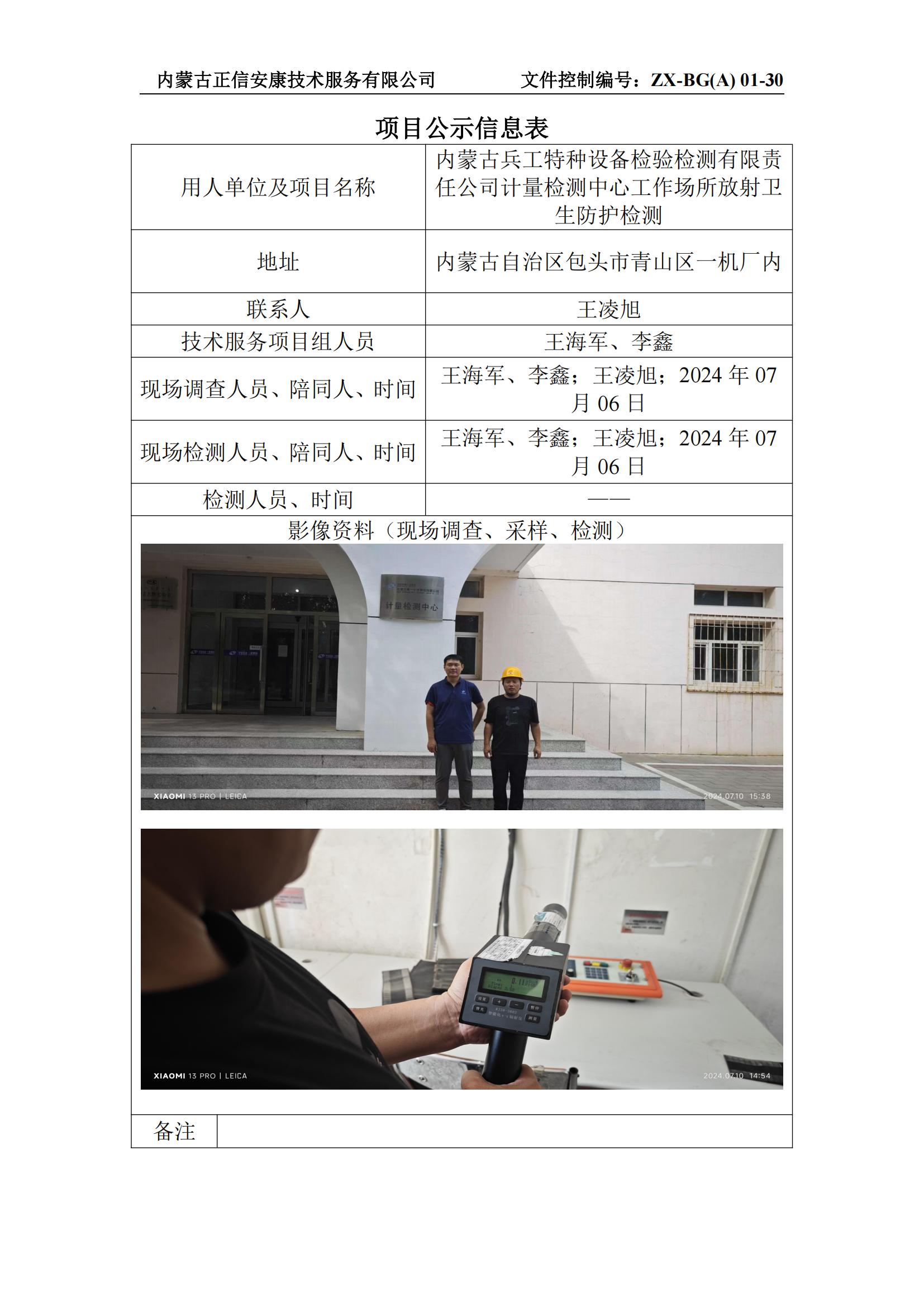 內(nèi)蒙古兵工特種設(shè)備檢驗檢測有限責(zé) 任公司計量檢測中心工作場所放射衛(wèi) 生防護檢測