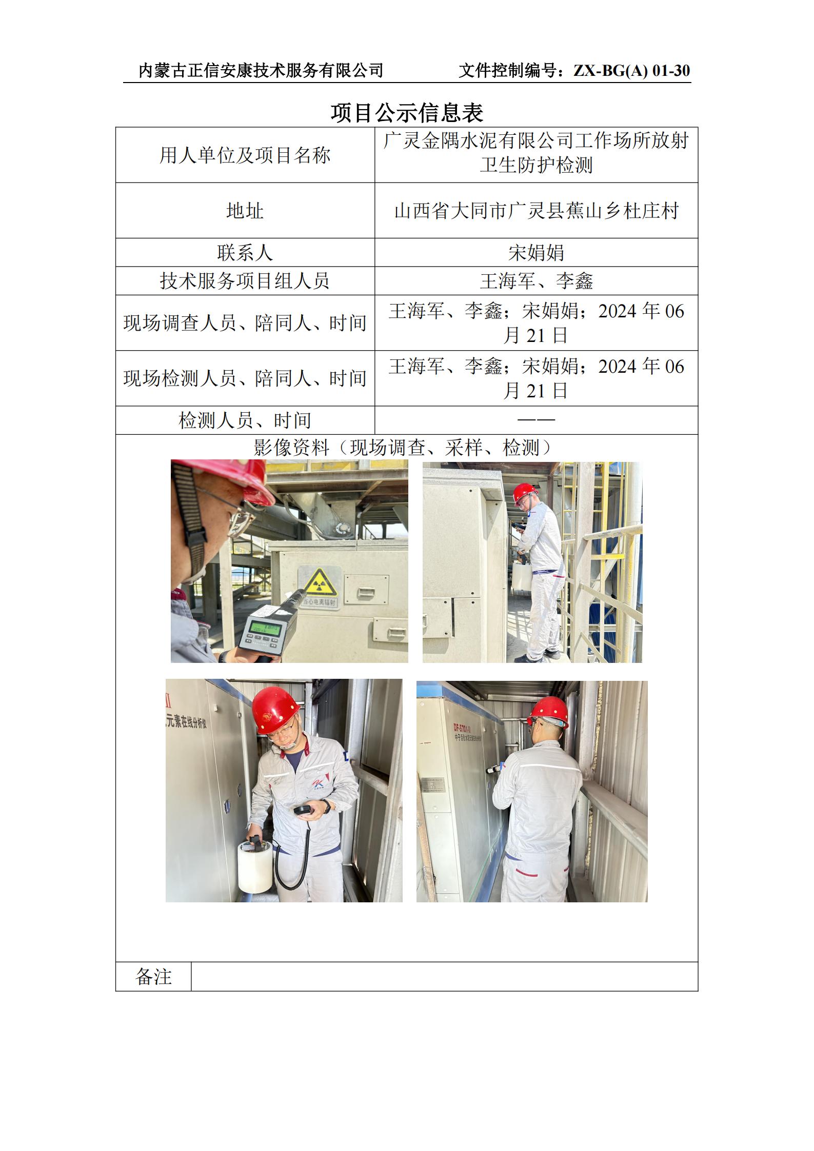 廣靈金隅水泥有限公司工作場所放射 衛(wèi)生防護(hù)檢測