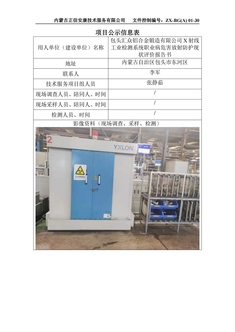包頭匯眾鋁合金鍛造有限公司X射線工業(yè)檢測系統(tǒng)職業(yè)病危害放射防護現(xiàn)狀評價