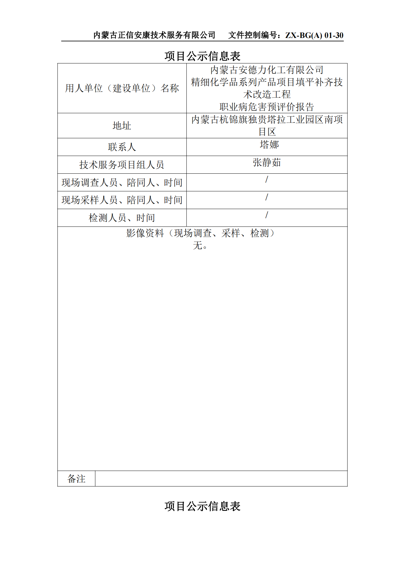 內(nèi)蒙古安德力化工有限公司精細化學品系列產(chǎn)品項目填平補齊技術改造工程職業(yè)病危害預評價
