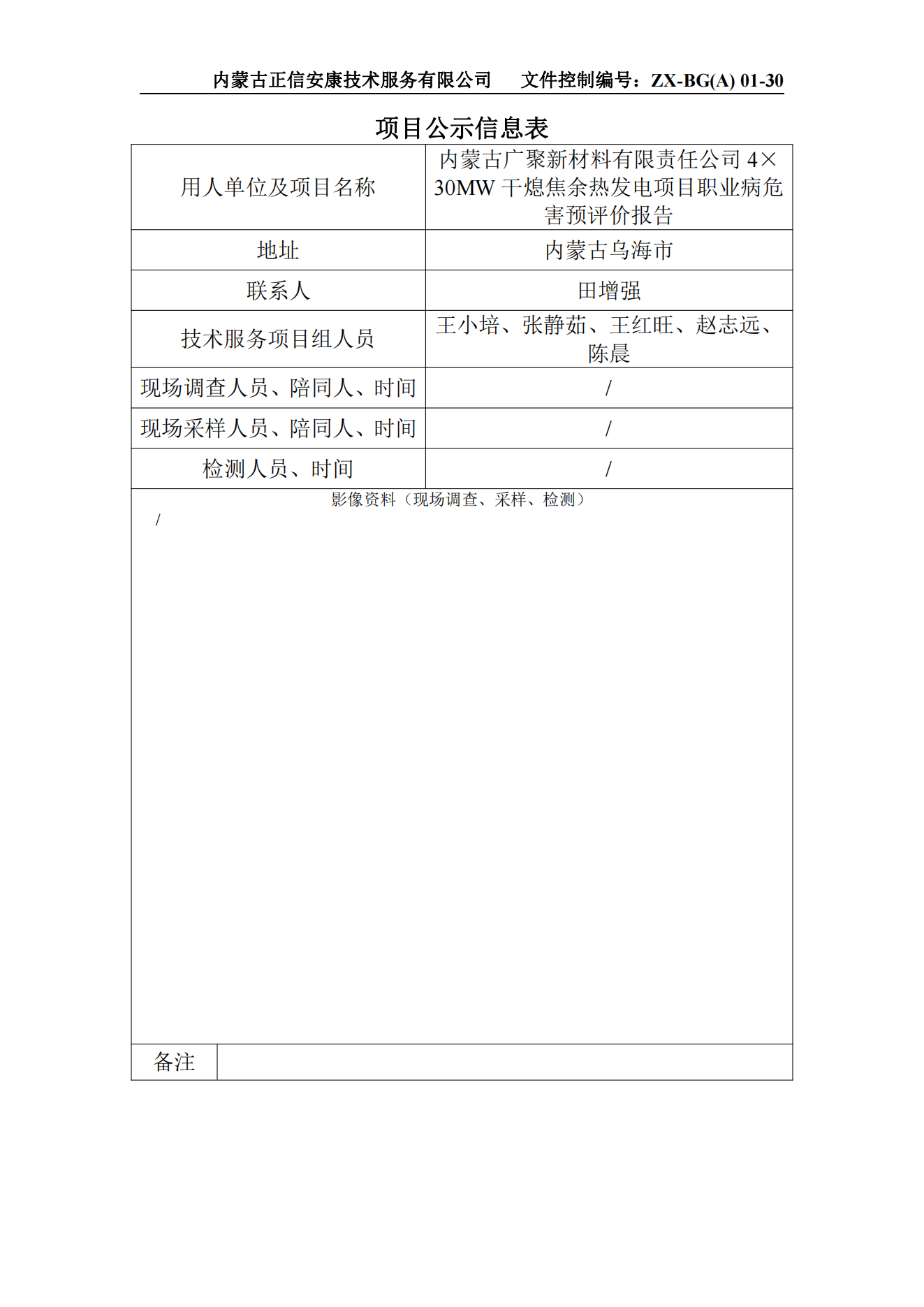 內(nèi)蒙古廣聚新材料有限責(zé)任公司4×30MW干熄焦余熱發(fā)電項(xiàng)目職業(yè)病危害預(yù)評價