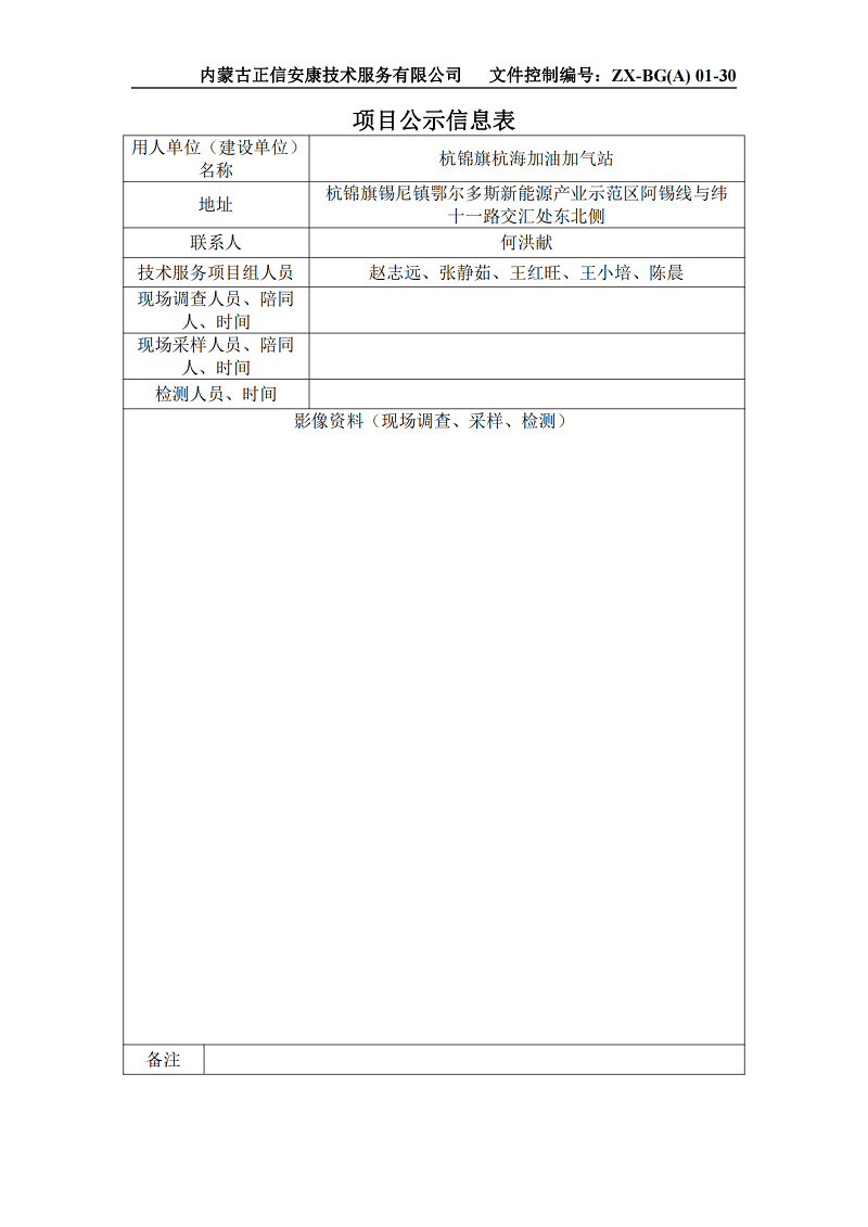 杭錦旗杭海加油加氣站LNG加氣項(xiàng)目職業(yè)病防護(hù)設(shè)施設(shè)計(jì)專(zhuān)篇項(xiàng)目公示信息表
