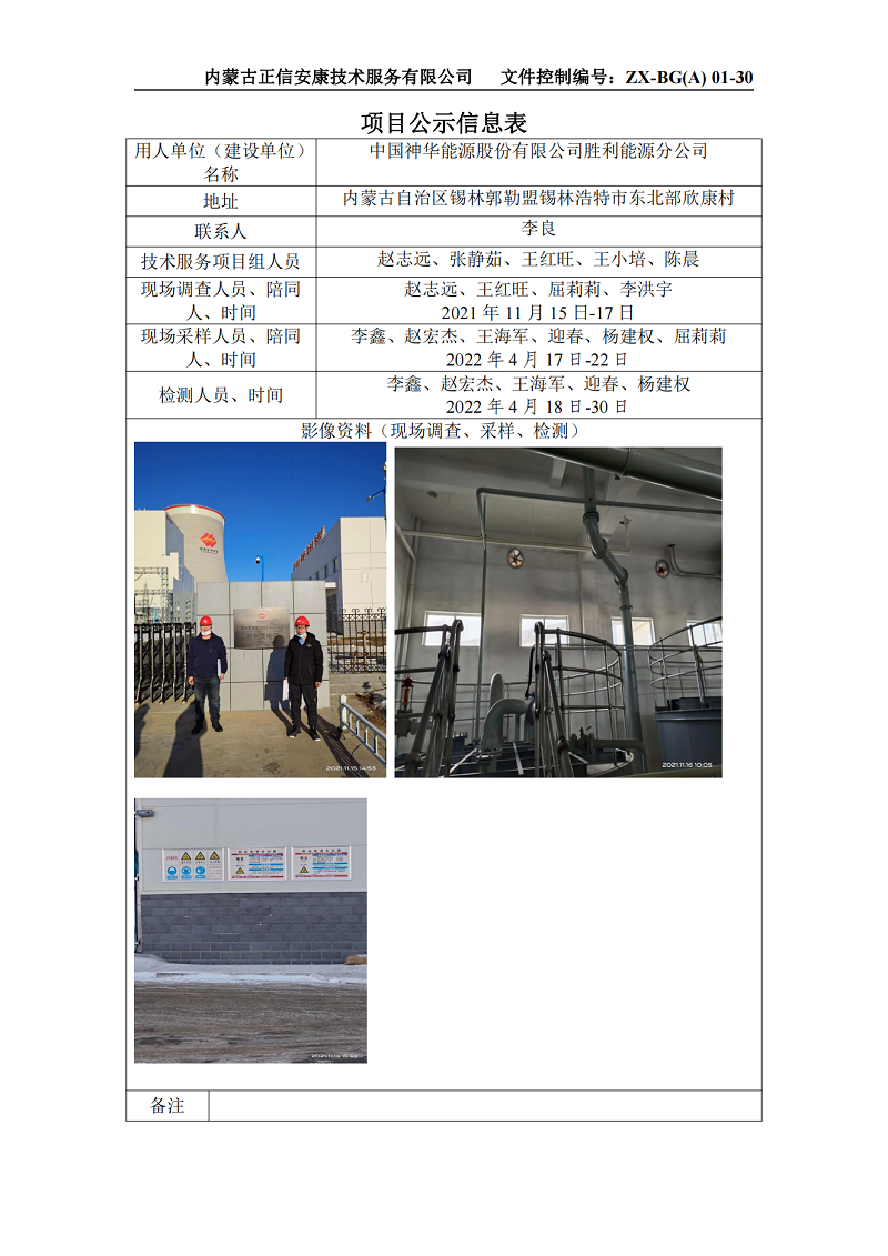 神華勝利電廠新建工程項(xiàng)目職業(yè)病危害控制效果評價(jià)項(xiàng)目公示信息表