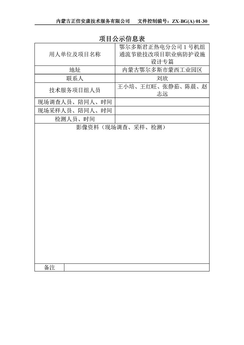 鄂爾多斯君正熱電分公司1號機組通流節(jié)能技改項目職業(yè)病防護設(shè)施設(shè)計專篇項目公示