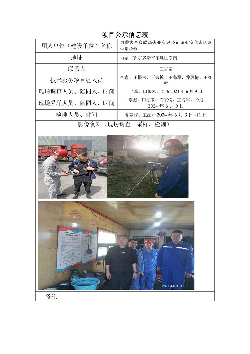 內(nèi)蒙古金烏嶸鼎煤業(yè)有限公司職業(yè)病危害因素定期檢測