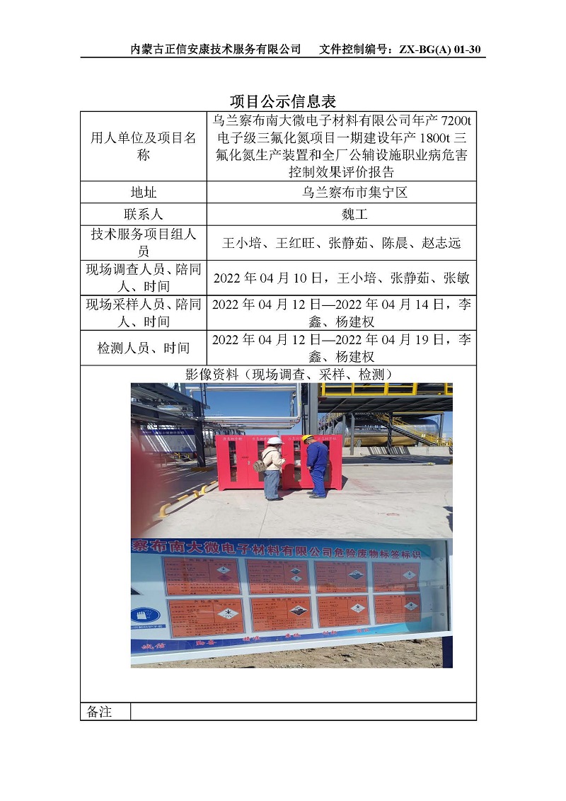 烏蘭察布南大微電子材料有限公司年產(chǎn)7200t電子級(jí)三氟化氮項(xiàng)目