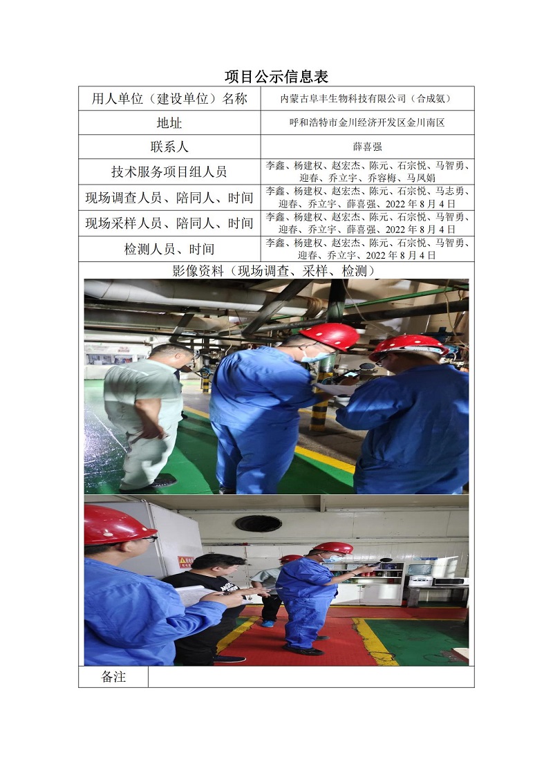 內(nèi)蒙古阜豐生物科技有限公司(合成氨)定期檢測(cè)項(xiàng)目公示