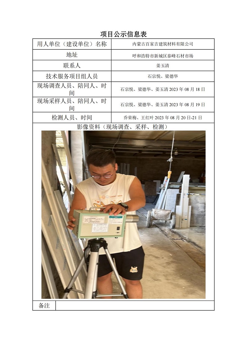 內(nèi)蒙古百家吉建筑裝飾材料有限公司定期檢測