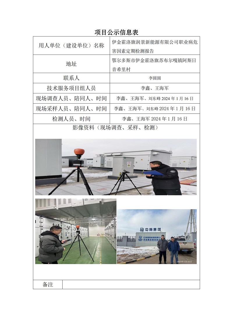 伊金霍洛旗潤景新能源有限公司職業(yè)病危害因素定期檢測報告