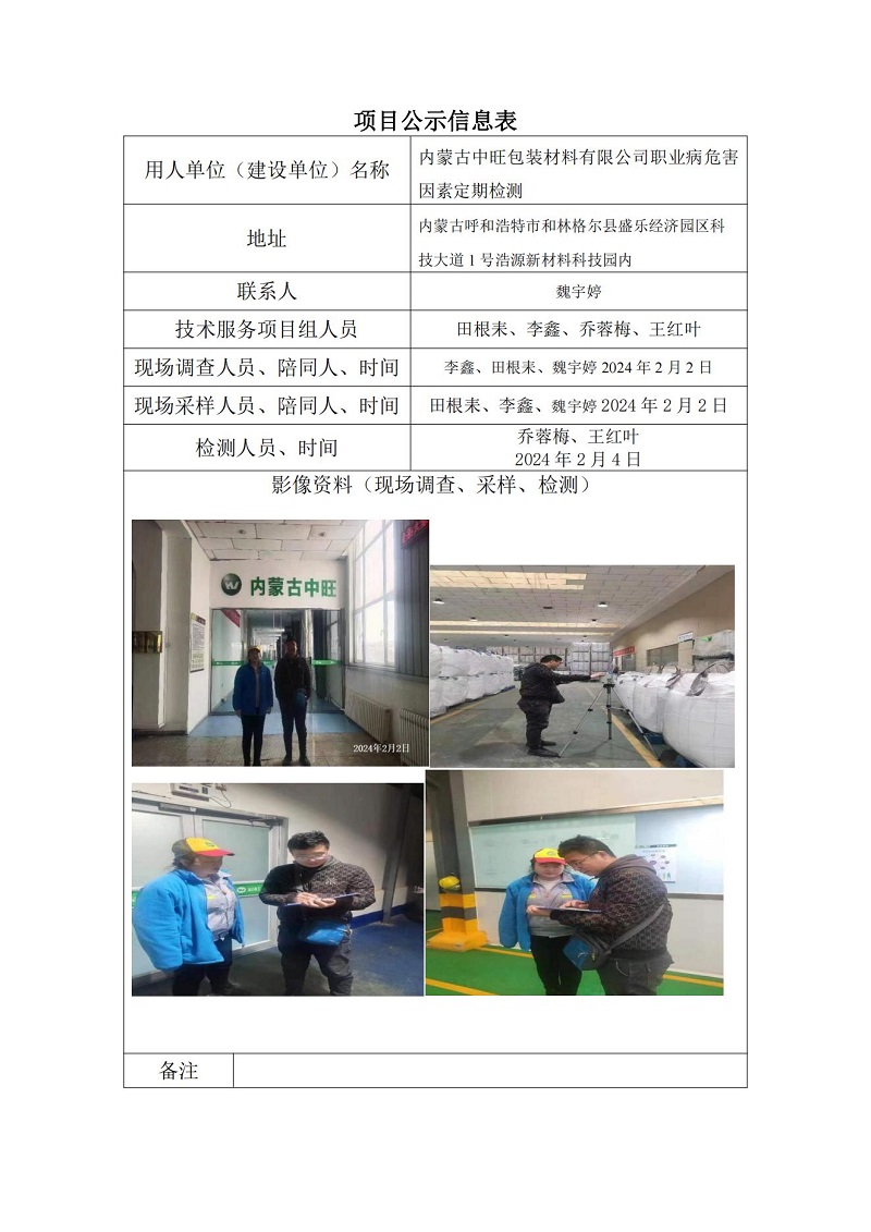 內(nèi)蒙古中旺包裝材料有限公司職業(yè)病危害因素定期檢測