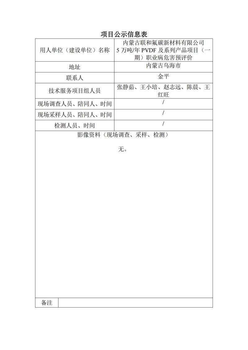 內蒙古聯(lián)和氟碳新材料有限公司預評價公示信息