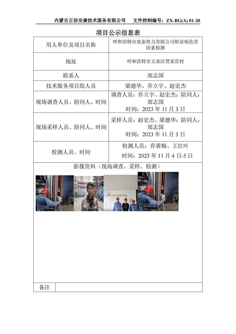 呼和浩特市旭泰熱力有限公司職業(yè)病危害因素檢測(cè)項(xiàng)目公示信息表(1)