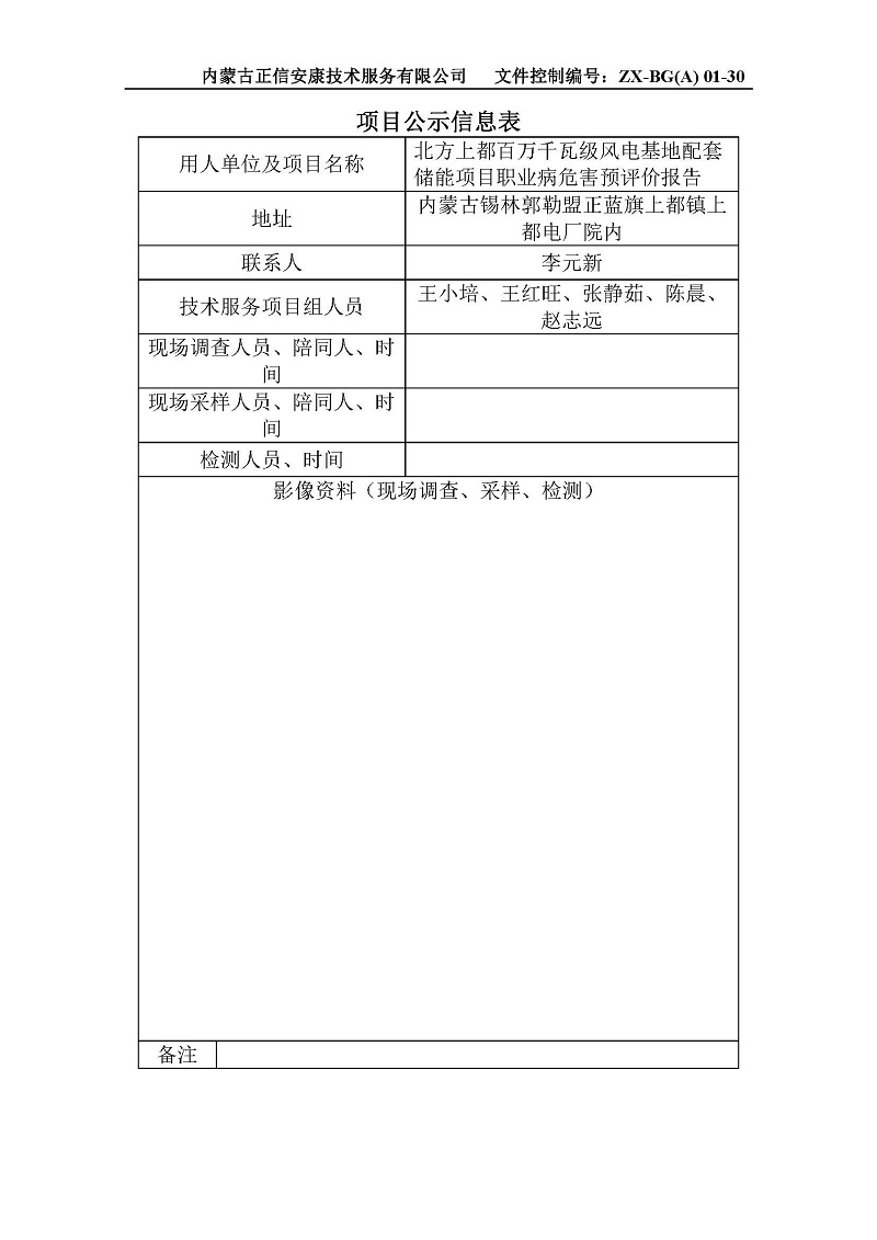 北方上都百萬千瓦級風(fēng)電基地配套儲能項目職業(yè)病危害預(yù)評價報告公示信息表