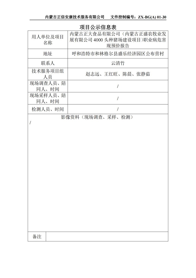內(nèi)蒙古正大食品有限公司(內(nèi)蒙古正盛農(nóng)牧業(yè)發(fā)展有限公司4000頭種豬場(chǎng)建設(shè)項(xiàng)目)預(yù)評(píng)-項(xiàng)目公示信息表