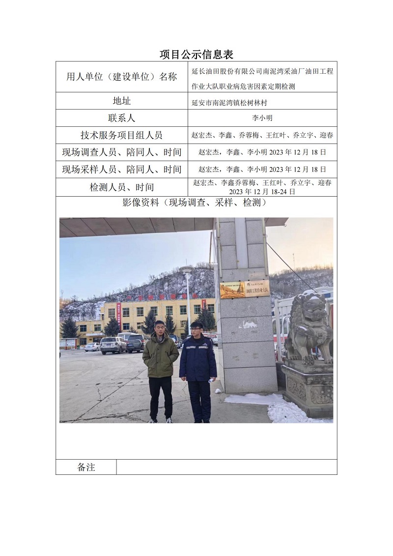 延長(zhǎng)油田股份有限公司南泥灣采油廠(chǎng)油田工程作業(yè)大隊(duì)職業(yè)病危害因素定期檢測(cè)