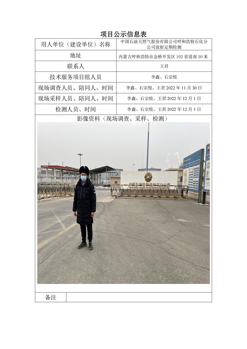 中國(guó)石油天然氣股份有限公司呼和浩特石化分公司放射定期檢測(cè)信息公示