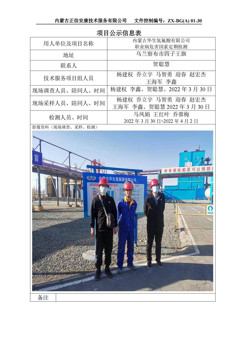 內(nèi)蒙古華生氫氟酸有限公司定檢信息公示