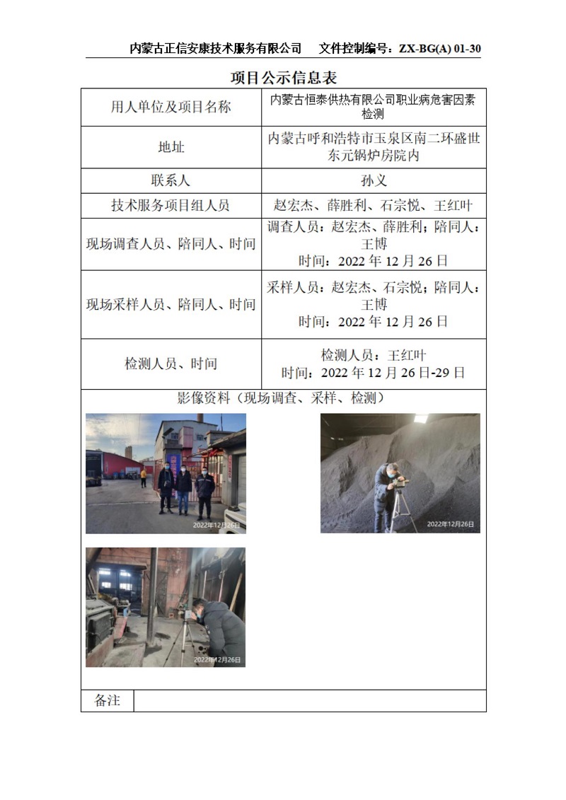 內(nèi)蒙古恒泰供熱有限公司職業(yè)病危害因素檢測(cè)項(xiàng)目公示信息表_