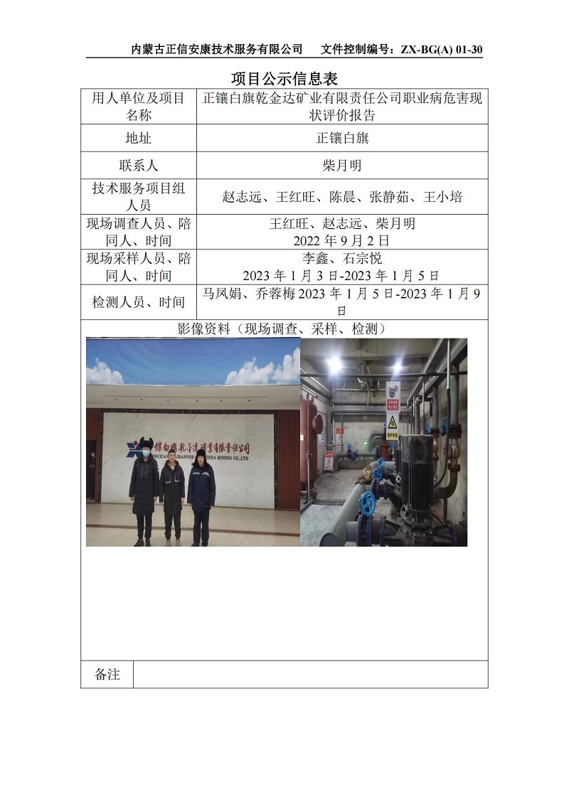 正鑲白旗乾金達(dá)礦業(yè)有限責(zé)任公司職業(yè)病危害現(xiàn)狀評(píng)價(jià)報(bào)告-項(xiàng)目公示信息表