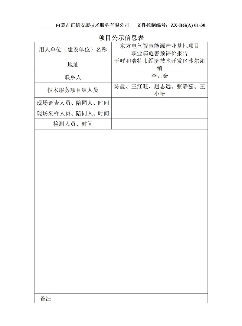 東方電氣智慧能源產(chǎn)業(yè)基地項目 職業(yè)病危害預(yù)評價公示表