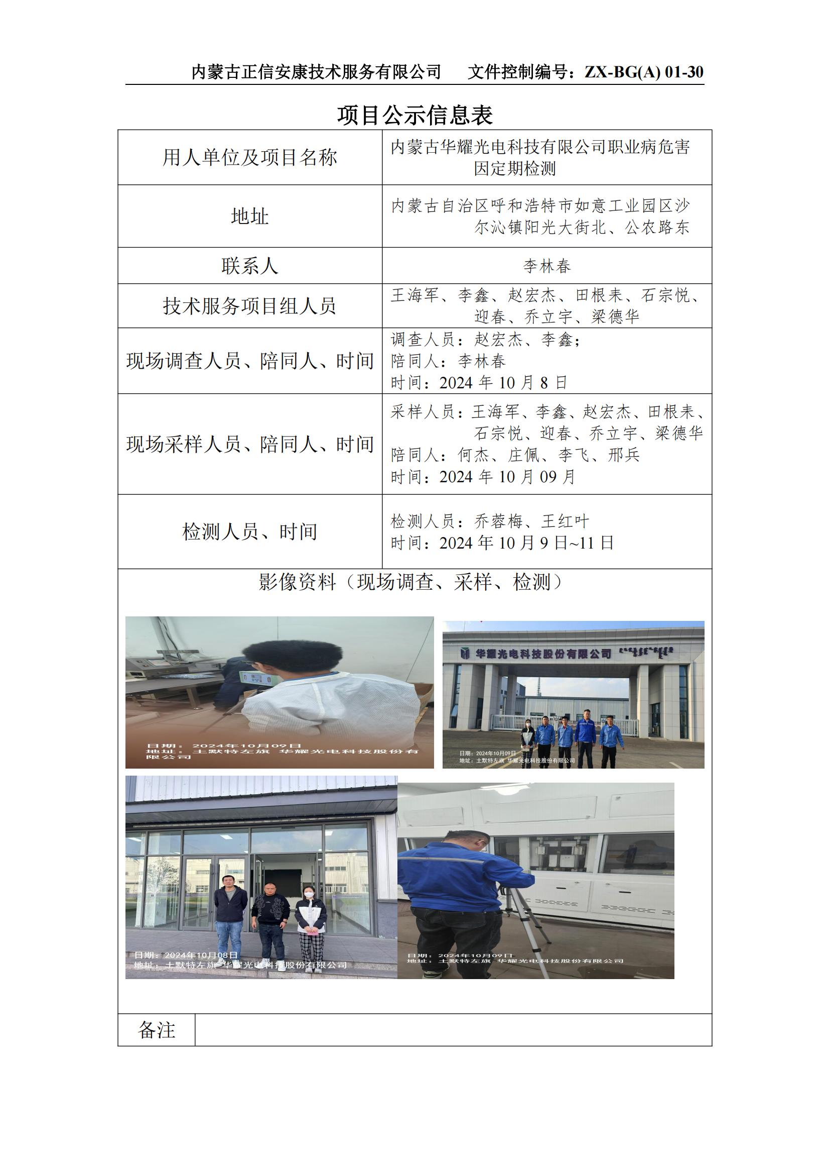 內(nèi)蒙古華耀光電科技有限公司職業(yè)病危害因定期檢測(cè)