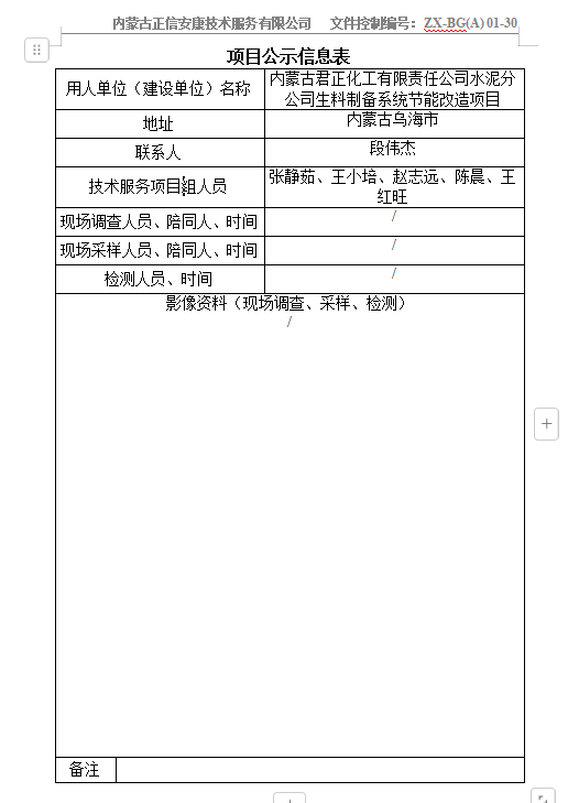 內(nèi)蒙古君正化工有限責(zé)任公司水泥分公司生料制備系統(tǒng)節(jié)能改造項(xiàng)目職業(yè)病危害預(yù)評(píng)價(jià)