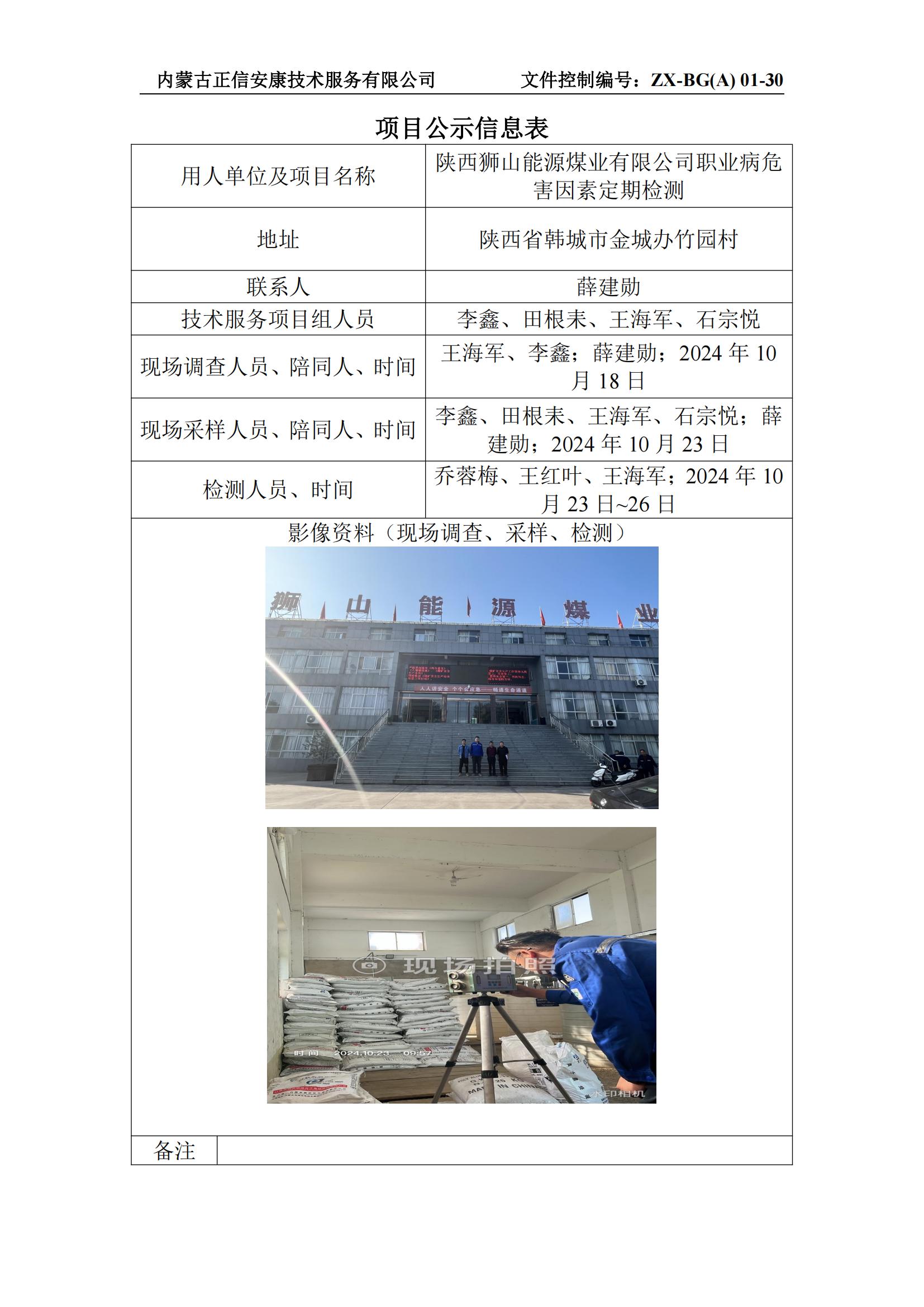 陜西獅山能源煤業(yè)有限公司職業(yè)病危害因素定期檢測(cè)