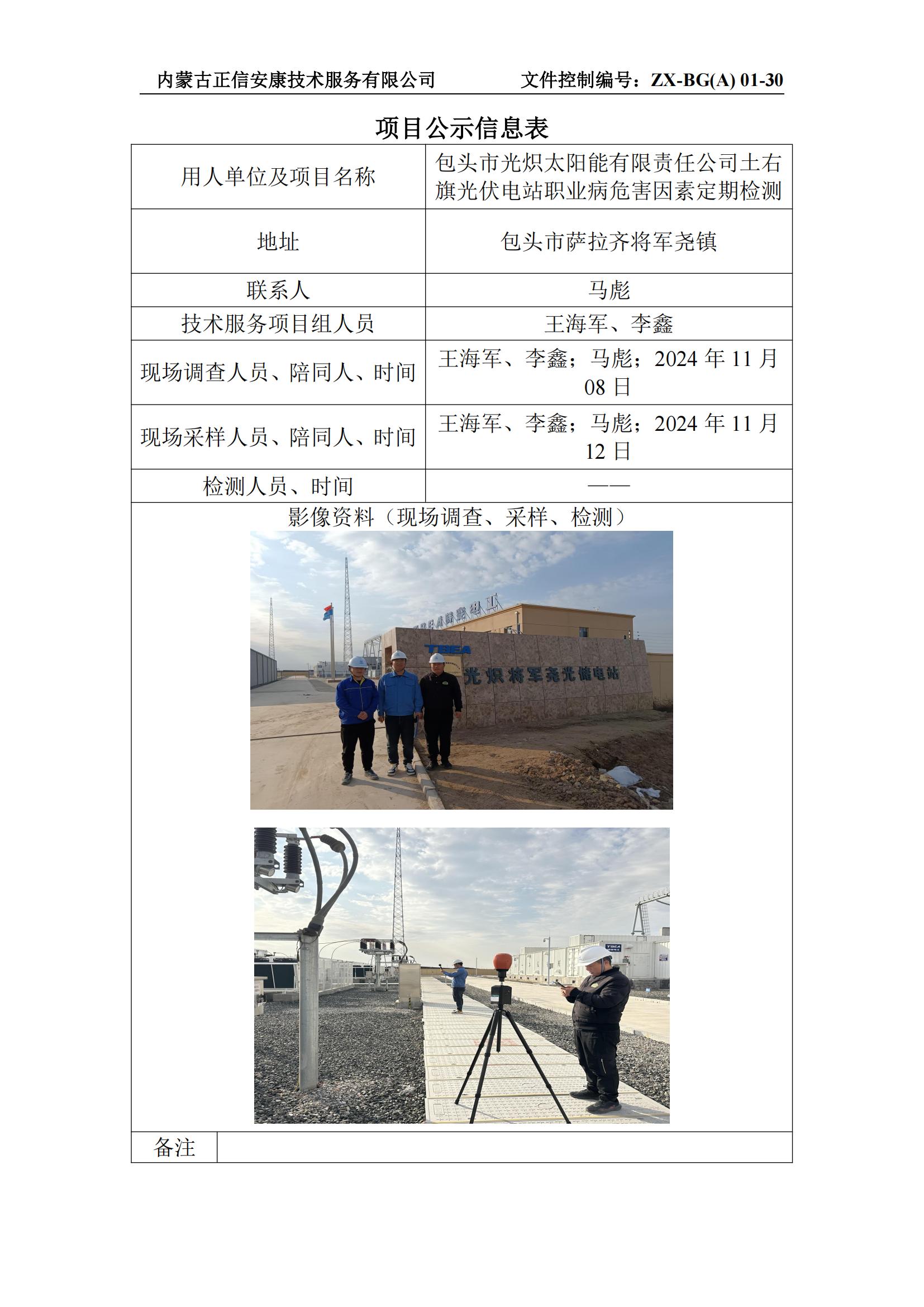包頭市光熾太陽能有限責(zé)任公司土右旗光伏電站職業(yè)病危害因素定期檢測(cè)