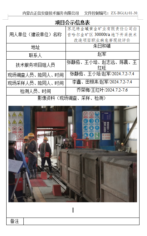 蘇尼特金曦黃金礦業(yè)有限責(zé)任公司白音哈爾金礦區(qū)30000t/a地下開采技術(shù)改造項(xiàng)目職業(yè)病危害現(xiàn)狀評(píng)價(jià)