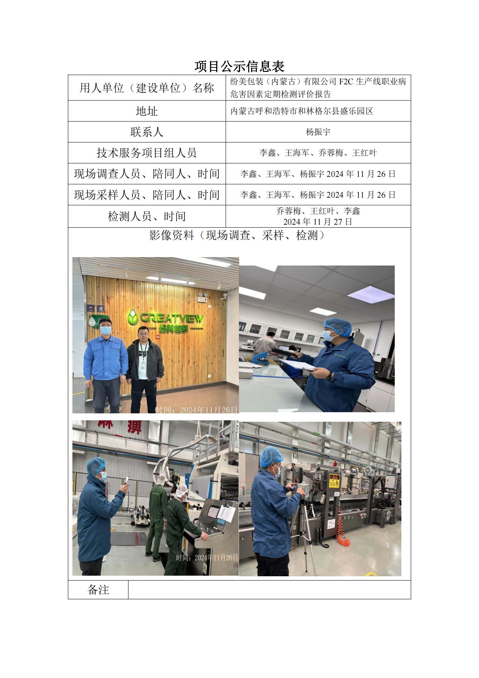 紛美包裝(內(nèi)蒙古)有限公司 F2C 生產(chǎn)線(xiàn)職業(yè)病 危害因素定期檢測(cè)評(píng)價(jià)報(bào)告
