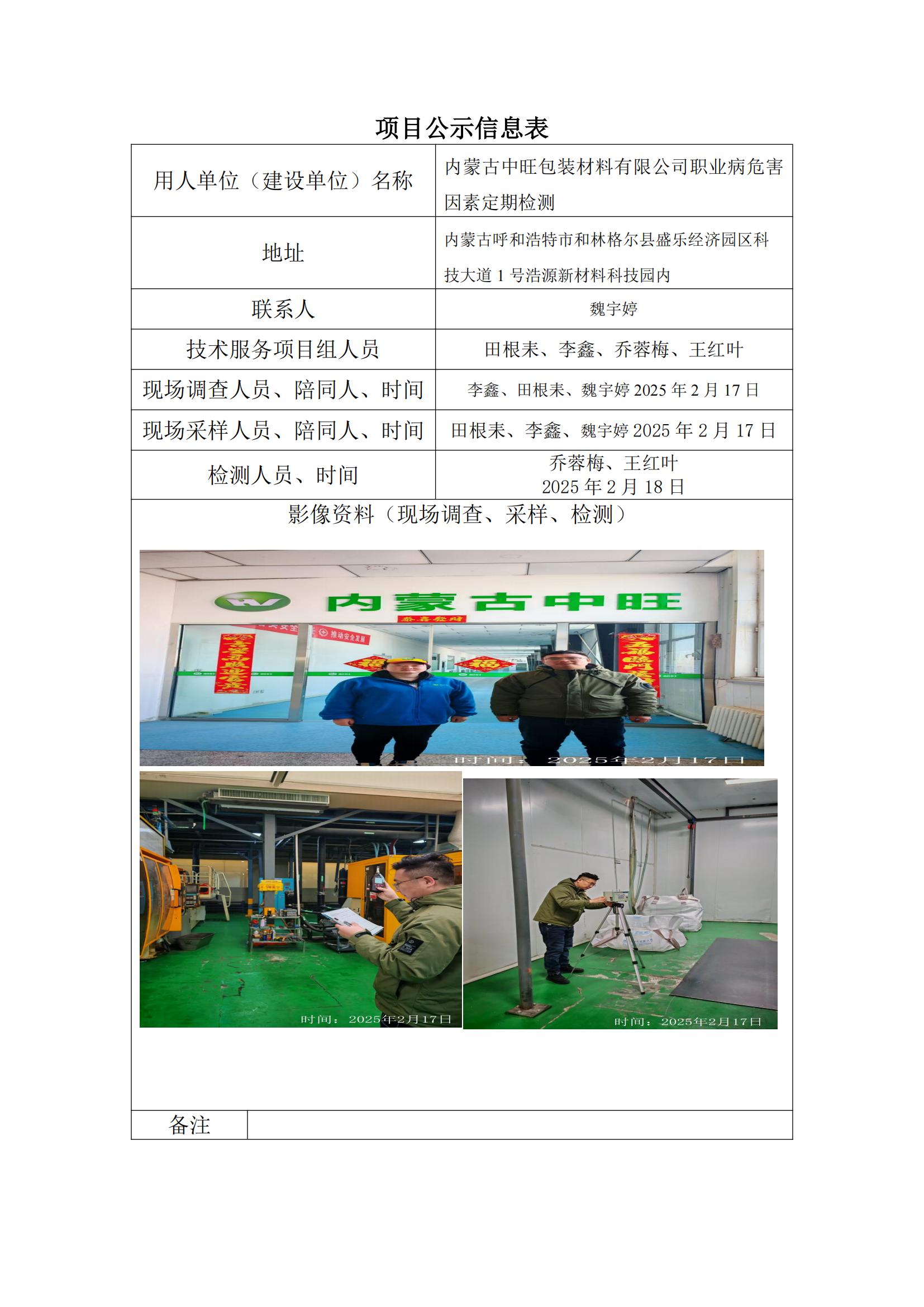 內(nèi)蒙古中旺包裝材料有限公司職業(yè)病危害因素定期檢測