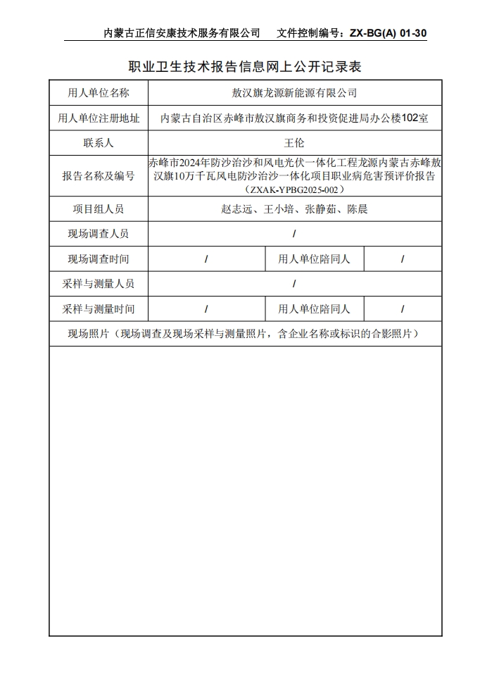 赤峰市2024年防沙治沙和風(fēng)電光伏一體化工程龍?jiān)磧?nèi)蒙古赤峰敖漢旗10萬千瓦風(fēng)電防沙治沙一體化項(xiàng)目職業(yè)病危害預(yù)評價(jià)報(bào)告 -