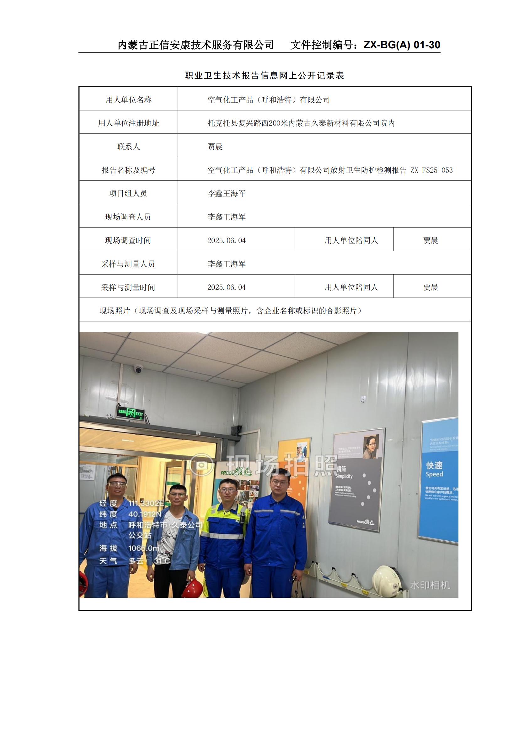 空氣化工產(chǎn)品(呼和浩特)有限公司放射衛(wèi)生防護檢測