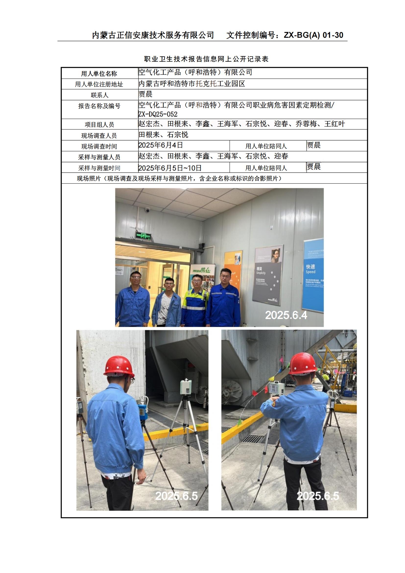 空氣化工產(chǎn)品(呼和浩特)有限公司職業(yè)病危害因素定期檢測