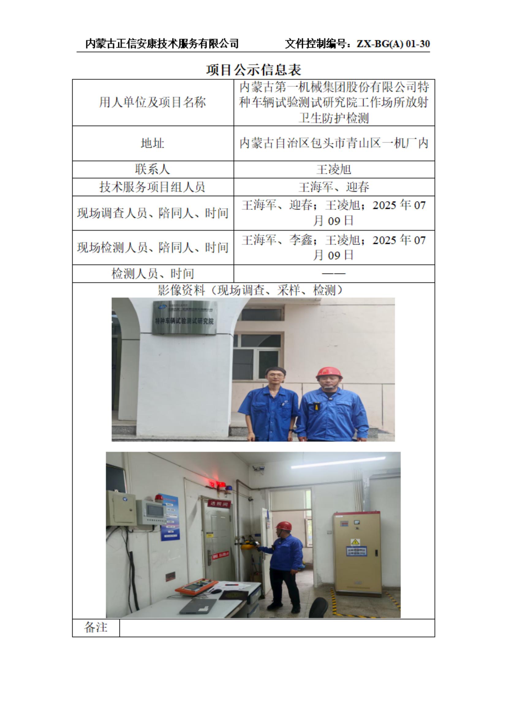 內(nèi)蒙古第一機械集團(tuán)股份有限公司特種車輛試驗測試研究院工作場所放射 衛(wèi)生防護(hù)檢測