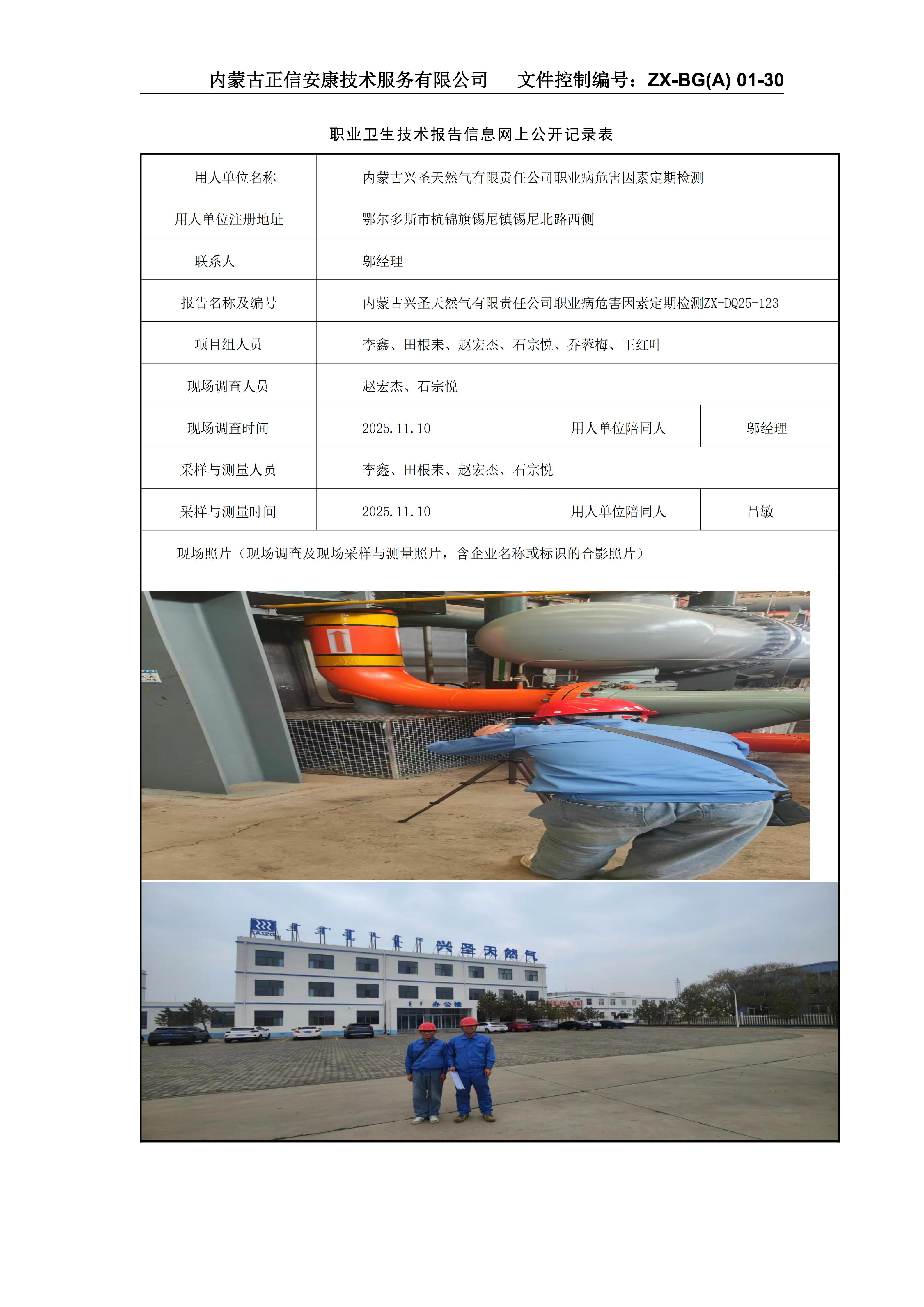 內(nèi)蒙古興圣天然氣有限責(zé)任公司職業(yè)病危害因素定期檢測